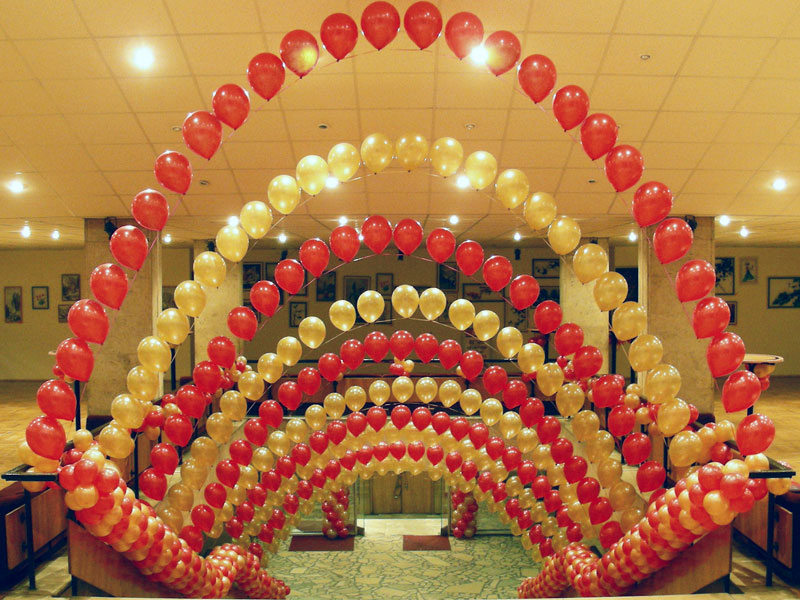 Существует множество способов оформить зал к празднику воздушными шарами. Красивые арки, гирлянды, цепочки из шариков у входа привлекут внимание прохожих и гостей. Веселые объемные фигуры из воздушных шаров поднимут настроение, делая ярким и детский праздник... и взрослый. Панно с надписью роскошно смотрятся на корпоративных мероприятиях и концертах. Сделайте рекламную акцию с раздачей воздушных шаров или печать логотипа на шарах, которые украсят выставочный стенд, запомнятся участникам и гостям праздника или останутся у них в качестве подарка.